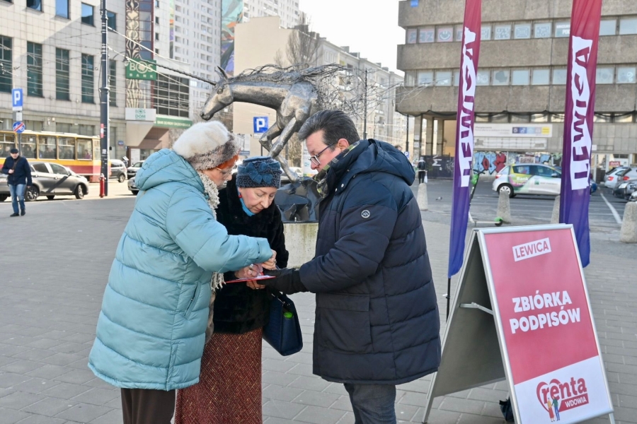 "Trwa zbiórka podpisów pod obywatelskim projektem ustawy Renta Wdowia, to jest nasz pomysł, Lewicy, który od kilku lat próbujemy przeforsować w naszym parlamencie. Póki co nie udało się tego zrobić, bo ustawa, która została złożona w zeszłym roku, została zamrożona w zamrażarce pani marszałek Witek, ale my te podpisy zbieramy, dlatego, że jest takie oczekiwanie społeczne. W województwie łódzkim mamy już kilka tysięcy podpisów. Wychodzimy na zewnątrz, dzisiaj tutaj w Łodzi będziemy zbierać podpisy, ale w najbliższych dniach w całym województwie łódzkim, we wszystkich powiatach można taki podpis złożyć. Ustawa jest bardzo prosta, bardzo oczywista i bardzo pomocna, szczególnie w tych trudnych czasach cholernej drożyzny i wysokiej inflacji" - zapewniał poseł Tomasz Trela.