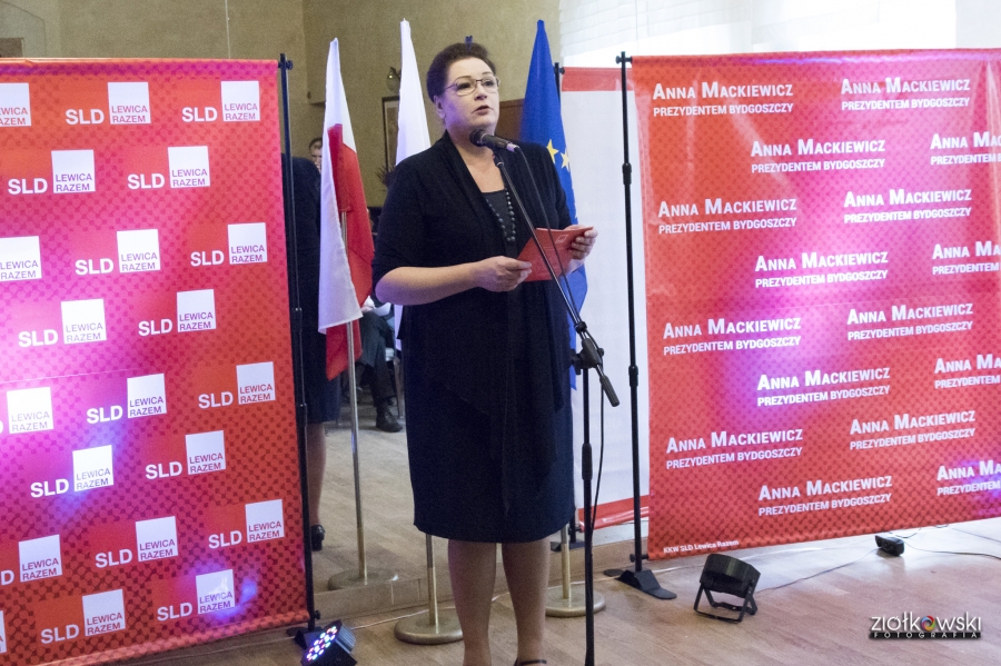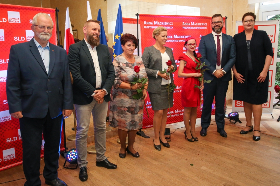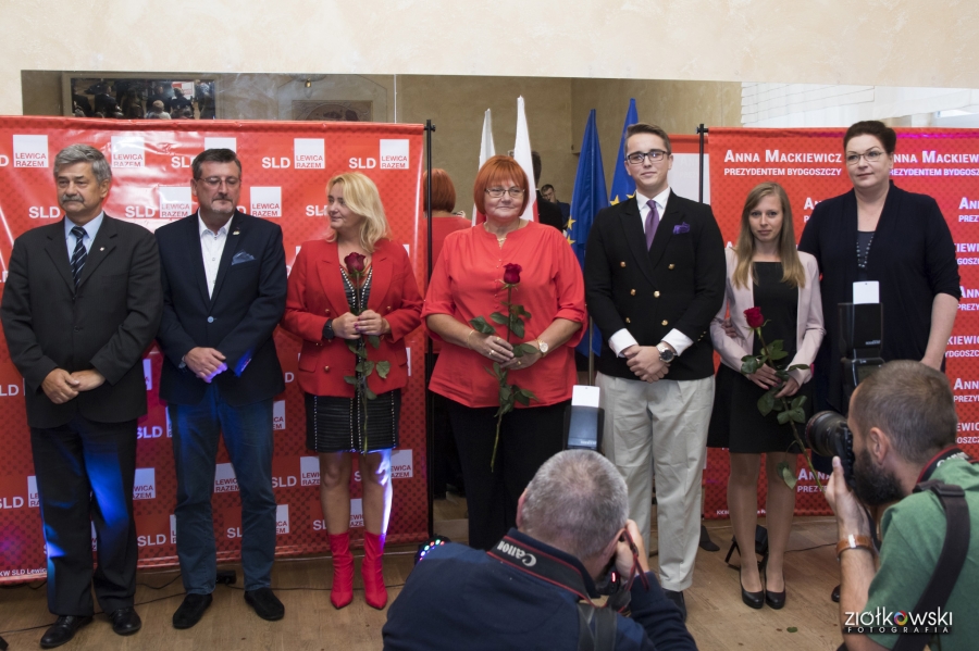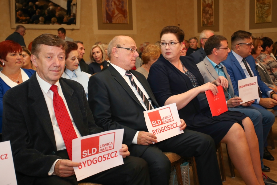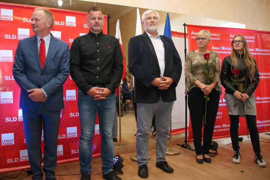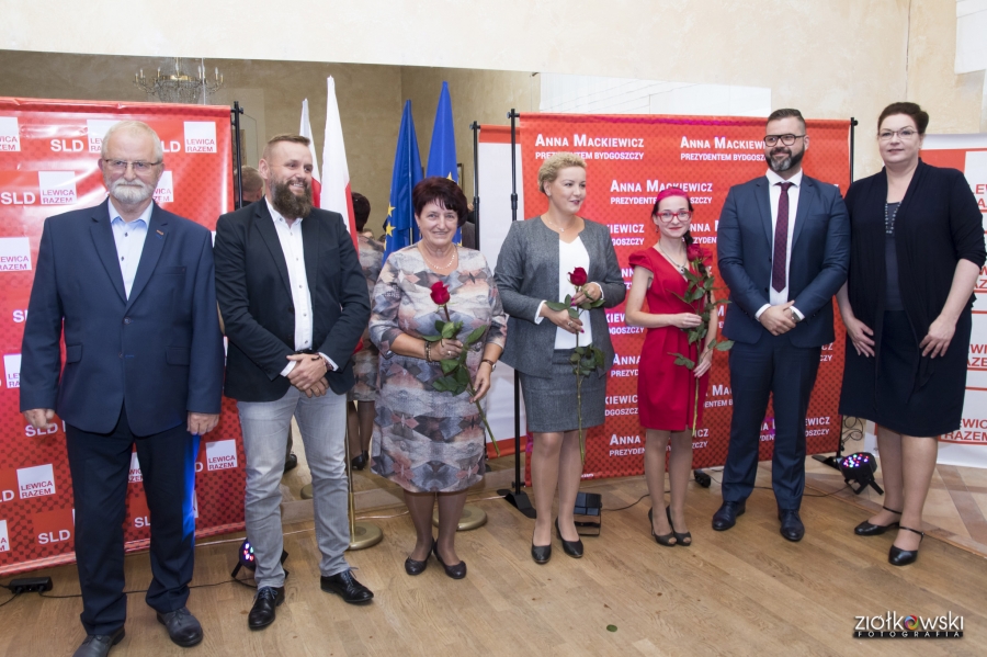 24 września 2018 r. odbyła się inauguracja kampanii samorządowej KKW SLD Lewica Razem w Bydgoszczy. Anna Mackiewicz, która kandyduje na urząd Prezydenta Bydgoszczy, zaprezentowała główne punkty swojego programu. Wydarzenie poprowadził duet Ania Niewiadomska i Tomasz Puławski, którzy przedstawili kandydatki i kandydatów do Rady Miasta Bydgoszczy oraz Sejmiku Województwa Kujawsko-Pomorskiego. Lider listy do Sejmiku Jan Szopiński dokładnie wyłuszczył, dlaczego warto głosować na listę KKW SLD Lewica Razem, a szef patii w mieście i województwie Ireneusz Nitkiewicz przedstawił ramy programu wyborczego lewicy. Na listach znalazły się osoby reprezentujące różne środowiska: społecznicy, szefowie rad osiedli, pracodawcy, wykładowcy akademiccy, przedsiębiorcy, osoby walczące o prawa osób niepełnosprawnych, artyści, nauczyciele, studenci i uczniowie. Fot. Piotr Ziółkowski
